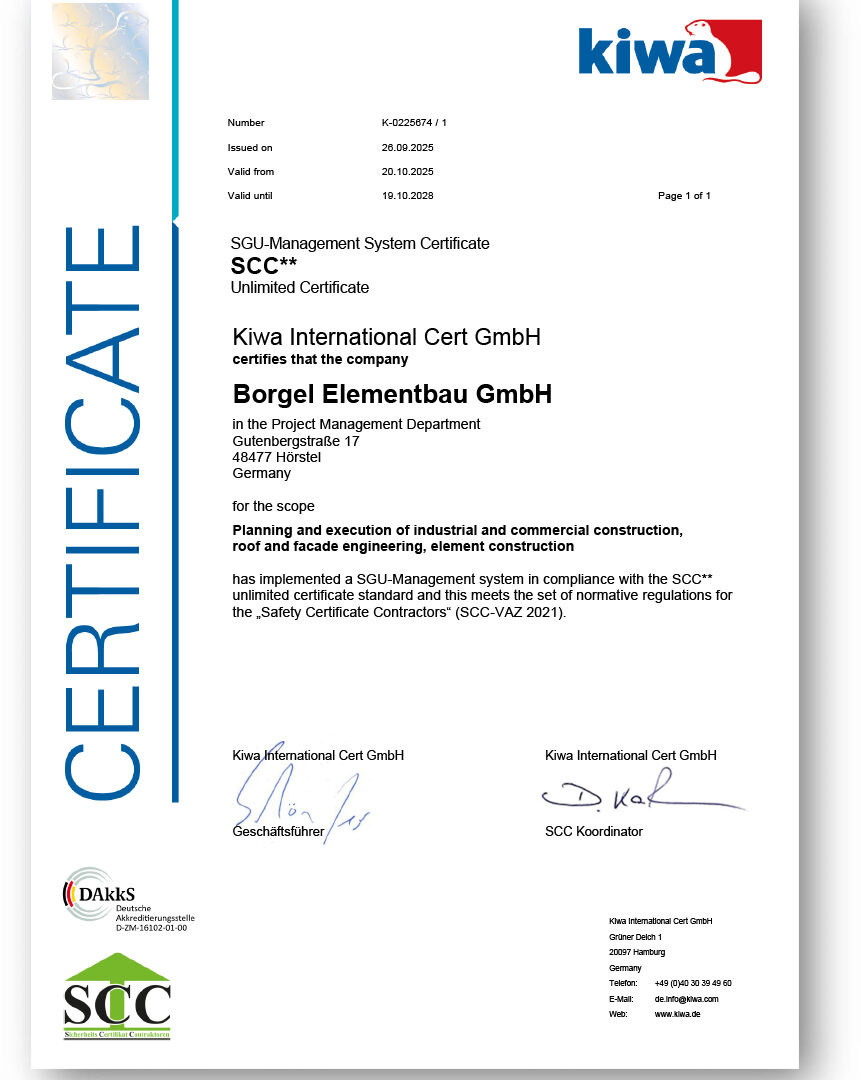 Erfolgreiche Rezertifizierung: Borgel Elementbau weiterhin auf höchstem Sicherheitsniveau SCC**